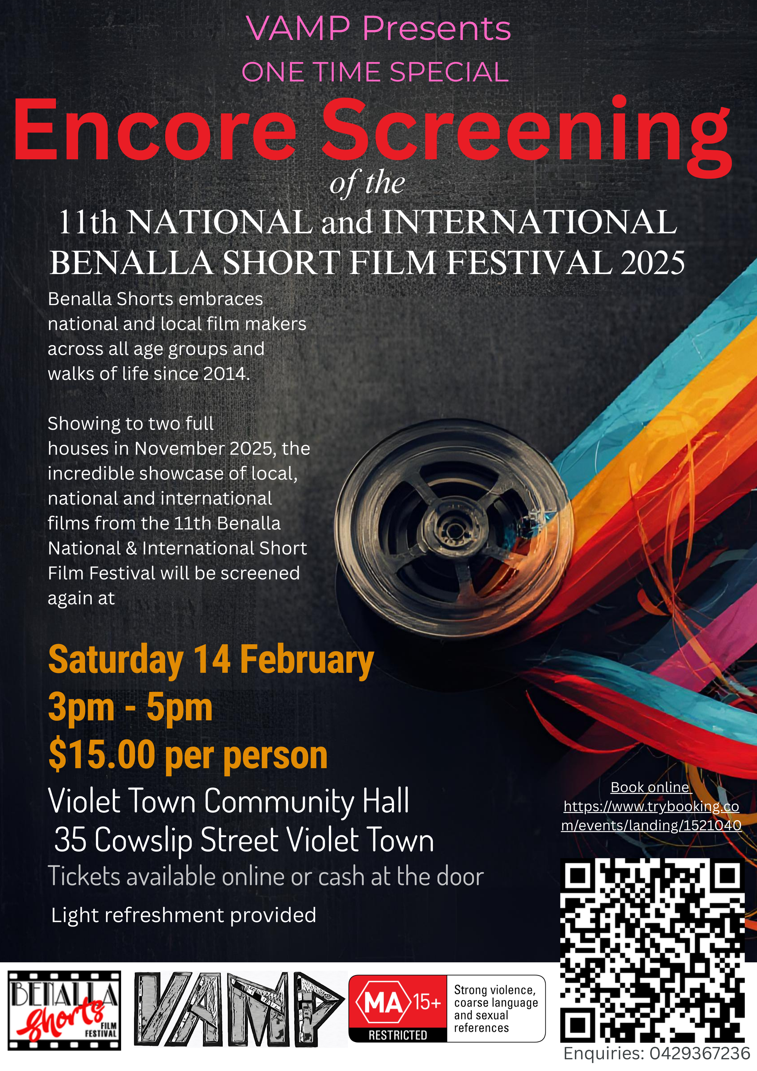 The 11th Benalla National & International Short Film Festival screened to 2 full houses at the Benalla Cinema last November. for those that missed this incredible showcase of local, national and international films, we have created this one time screening in Violet Town for those that missed the opportunity in Benalla.
